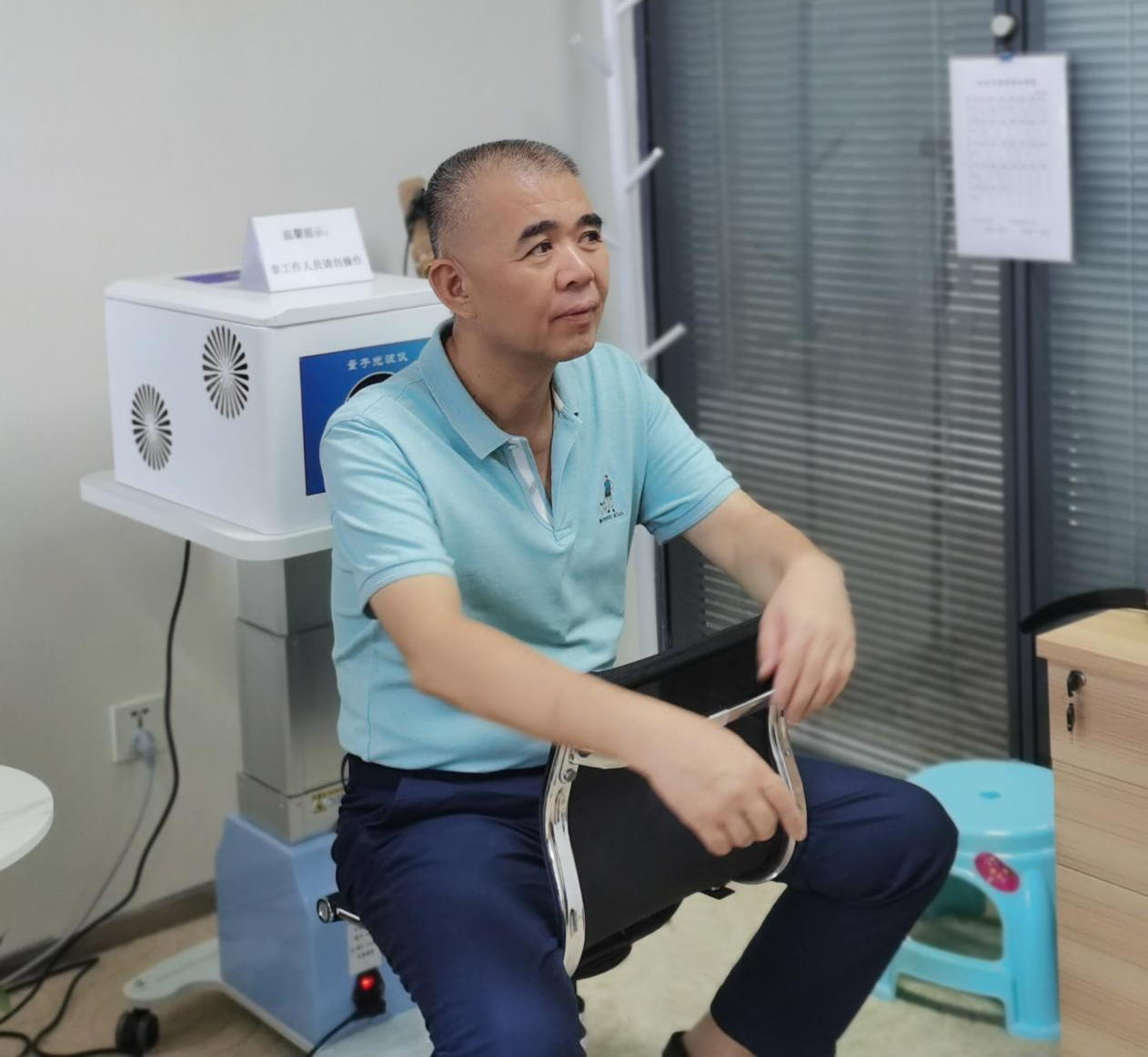 厦门老年大学常务副校长李龙波先生体验全息调频光波仪