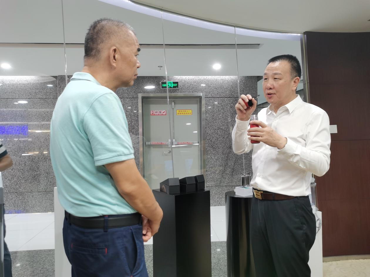 胡滨董事长向厦门老年大学常务副校长李龙波先生介绍全息能量杯
